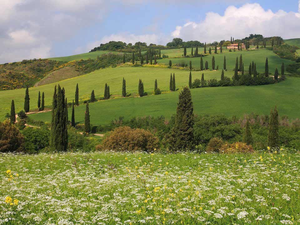 Incantevole realtà, questa campagna dove i cipressi non turbano i pensieri quali rigide sentinelle di morte: sono solo tocchi flessuosi di verde diverso in sintonia con le tonalità della cupola cristallina del cielo. Presenze viventi, immote e non oscure… Persistono nella loro funzione: sottolineare sentieri, proteggere mete di serenità. Agili e sicuri, pungono l’orizzonte come guglie di chiese. Ed al tramonto, pennelli capovolti, quasi dita imperiose, indicano le stelle, cercano la luna, annotano, se vuoi, progetti di vita futura Ritangela Tomasicchio composuit 2009