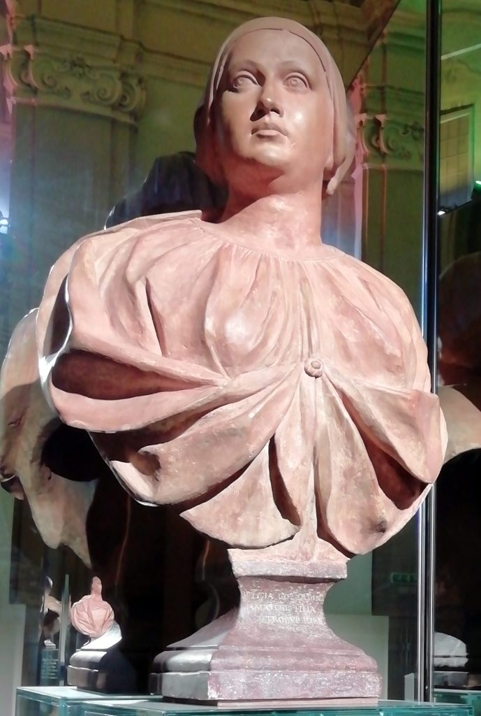 Oggi solo un busto in terracotta la ricorda insieme ad altre 11, quasi sconosciute, ma al loro tempo illustri, donne bolognesi; anzi no, recentemente la città le ha dedicato una rotonda!