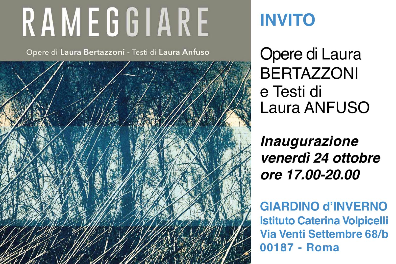 E’ un grande piacere pubblicare l’annuncio e la presentazione della Mostra che la nostra “amica” Laura Bertazzoni, che in questo Blog cura la rubrica Immagini, terrà a Roma nei prossimi giorni. Con le nostre congratulazioni ad una “over” che sta percorrendo una nuova fortunata carriera d’artista!