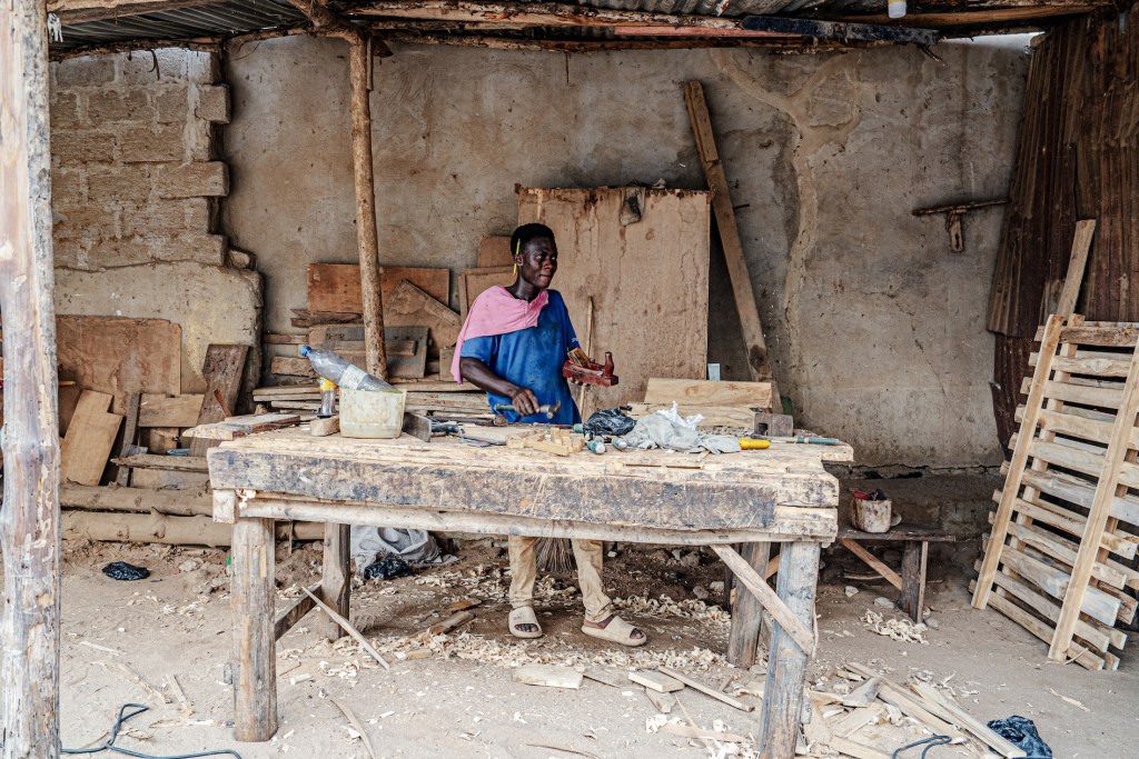 Nelle strade interne, dove la gente vive la vita di tutti i giorni, dove il rumore del traffico pare lontano c’è l’Africa che conosco e in cui ho vissuto: il sarto (la maggior parte di questo mestiere in Africa è svolto dagli uomini), il falegname, la donna che vende i tessuti batik mentre allatta il bambino piccolo, la finestra di una casetta con le tendine perfette, la signora che cucina davanti a casa e che sorride divertita solo perché le ho detto qualche parola, quell’altra che raccoglie le pezze di stoffa che ha tinto con i nodi e che sono state stese al sole per asciugarsi.
