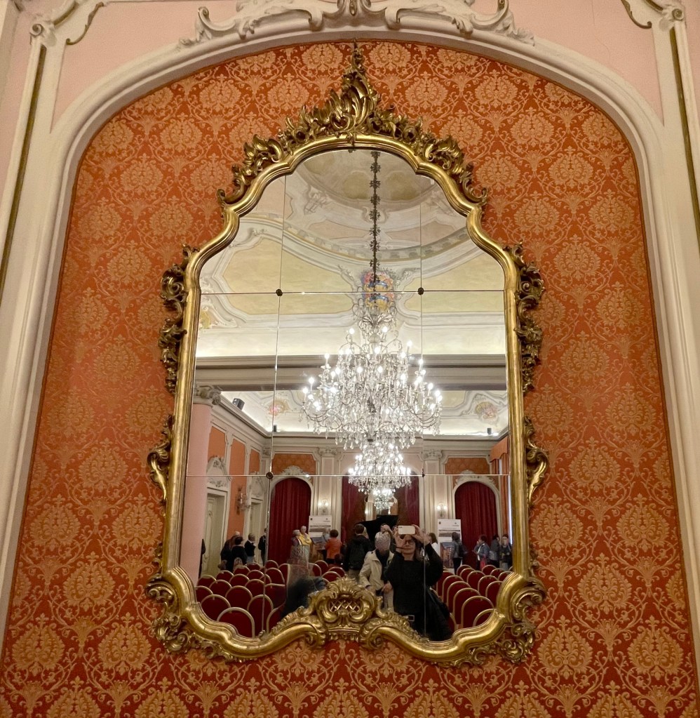 Quando arrivai, naturalmente mi tolsi il cappotto e mi specchiai nel grande specchio dalla bella cornice dorata: ero una nuvola rosa dagli occhi verdi in una sala d’altri tempi. Mi accorsi di aver sbagliato profumo, era maschile, ma avevo solo un campioncino ed a quei tempi non potevo permettermi altro. Stranamente, però, la mia scia attirò subito, come mosconi, una fila di cadetti. Ed iniziai ad essere invitata ballo dopo ballo…