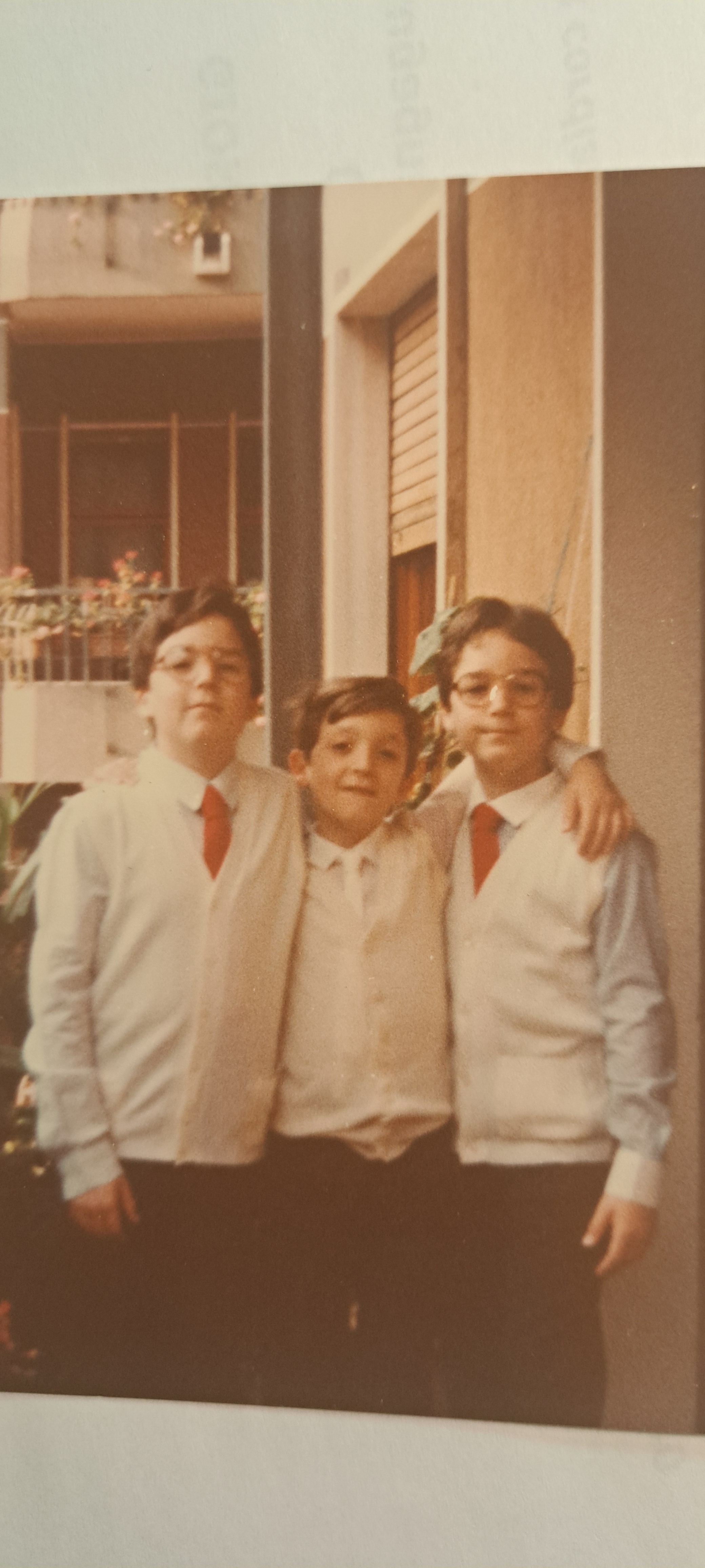 Noi tre ragazzini, immersi nell’effervescente atmosfera degli anni ’80, nella tranquilla prima periferia di Bari, al civico 48 di via della Resistenza nel quartiere San Pasquale-Carrassi, abbiamo trascorso gli anni dorati della fine dell’infanzia e l’irrequieta stagione dell’adolescenza. La scuola era vicina, così come l’amato campetto di calcio in pietrisco, testimone delle nostre prime sfide, prima che al suo posto sorgesse “la GS”, come la chiamava affettuosamente nonna Rosa, il nuovo, imponente supermercato. E poi c’era la sala giochi, santuario dei nostri sabati pomeriggio, e le giostre vibranti di fronte a casa, con il loro allegro frastuono nel weekend. Poco più avanti in quegli anni inaugurarono il “Central Park” di Bari o meglio il Parco 2 Giugno, uno dei due polmoni verdi della città. Il quartiere Carrassi- San Pasquale, dove vivevamo, era nato negli anni ’70: grandi condomini con giardini, appartamenti molto grandi e anche abbastanza eleganti per le famiglie allora un po’ più numerose di oggi. C’era il mercato di via Montegrappa, percorso in lungo e in largo quando accompagnavamo nostro padre a fare la spesa tra le decine di bancarelle e un vociare intenso. E’ lì che siamo cresciuti, è lì che abbiamo abitato per alcuni anni.