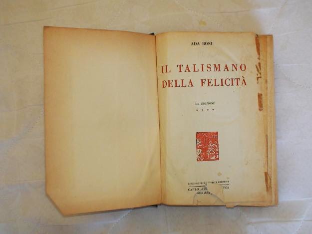 Ma non vi abbiamo ancora descritto la cucina di nonna Rosa. Entrarvi significava varcare la soglia di un mondo incantato, dove ogni dettaglio raccontava una storia, almeno per noi! Dopo l’ingresso, sulla sinistra, si entrava in cucina dove il pavimento era fatto di mattoncini verdi con le piastrelle in tinta e i suoi mobili in metallo e formica erano di un colore che non sapremmo dire se fosse un rosso sbiadito. Di quei mobili ricordiamo, però, il rumore delle cerniere quando si aprivano e chiudevano e le ante mai a posto. I fornelli poi avevano i suoi anni e il forno, se non stavi attento a sorvegliare la cottura, bruciava in un attimo tutti gli sforzi fatti per cucinare. Era quello il regno di nostra nonna, tra pasta al forno, carne e dolci di ogni tipo. Le uniche eccezioni erano il pesce, perché “impuzzoliva” tutta la casa e poi era impossibile mettersi in competizione con il genero, nostro padre! e il pollo, forse per via delle innumerevoli diete che faceva dove il pollo era l’alimento principale secco e senza sapore! Per i suoi manicaretti consultava il suo prezioso ricettario, Il Talismano della felicità, oggi purtroppo perduto.