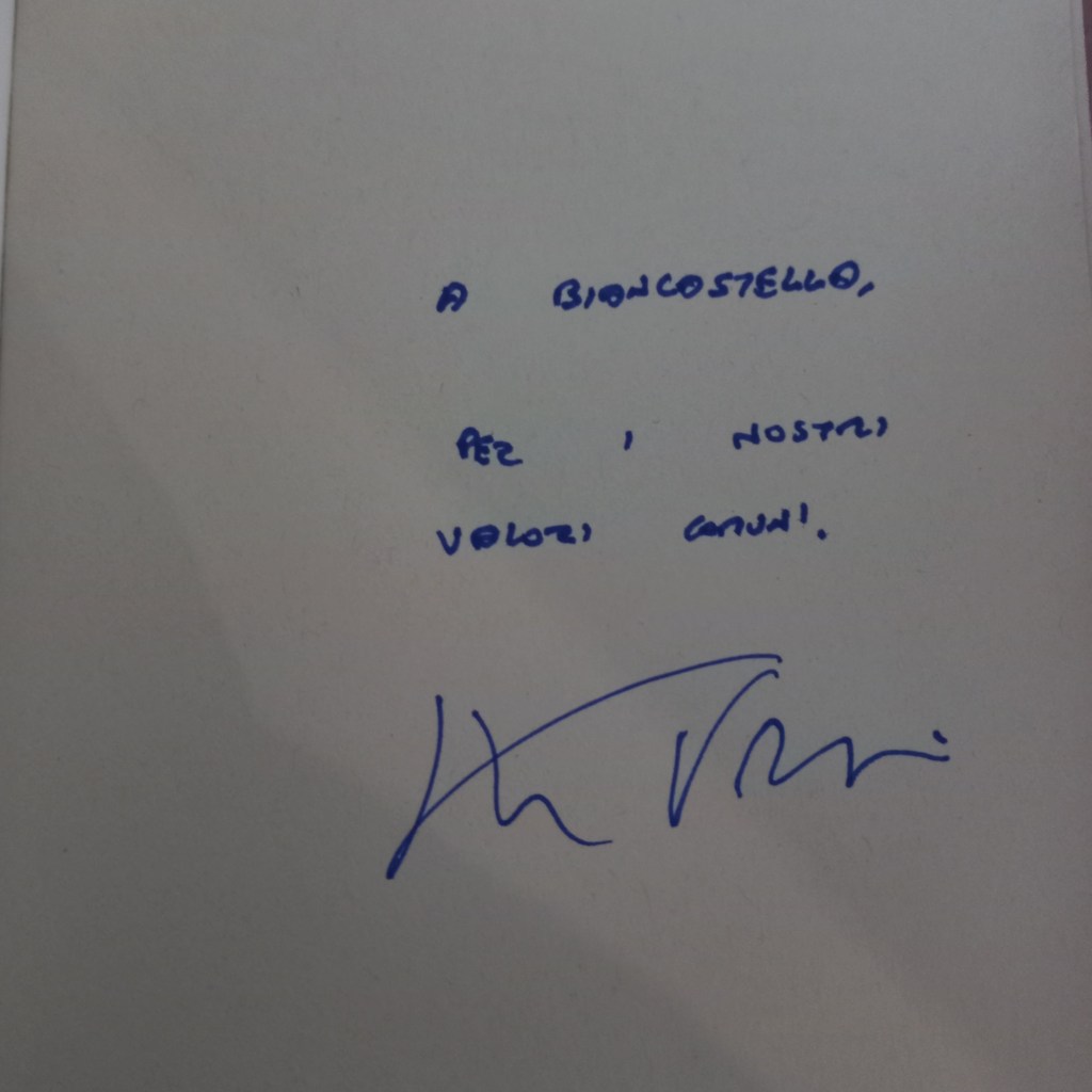 Nel dialogo tra noi, ho visto accendersi in quel momento un sorriso di riconoscimento: non ero solo una lettrice, ma una persona che aveva percorso un pezzo di storia insieme a lui, in nome degli stessi valori. Poi, quel gesto semplice ma significativo: la dedica sulla mia copia del libro. “A Biancastella per i nostri valori comuni”. Non un autografo di circostanza, ma un segno tangibile di un legame che attraversa il tempo. Quel momento ha trasformato così la mia copia da un semplice libro a qualcosa di unico, carico di storia e di emozione. E dunque, felice per questo piccolo tesoro personale, vi racconto cosa c’è nelle pagine di questo libro.