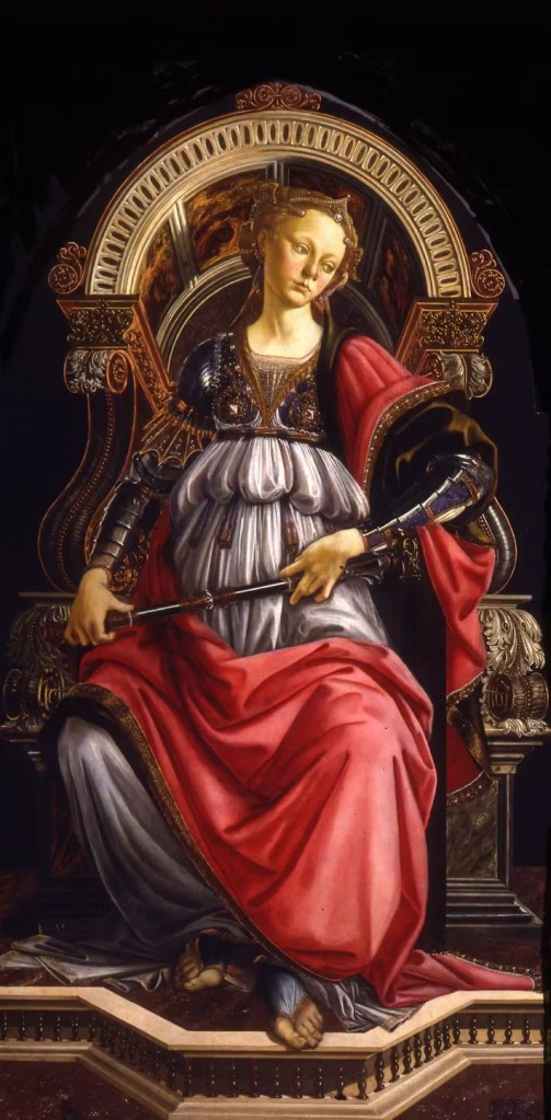 Le opere del Botticelli nascondono molte allegorie avvalendosi della simbologia che a quel tempo si dava alle pietre preziose. Nell’Allegoria della fortezza, la virtù ha una corazza adornata da due diamanti, in corrispondenza dei due capezzoli, diamanti che si notano poco, perché hanno il taglio dell’epoca.